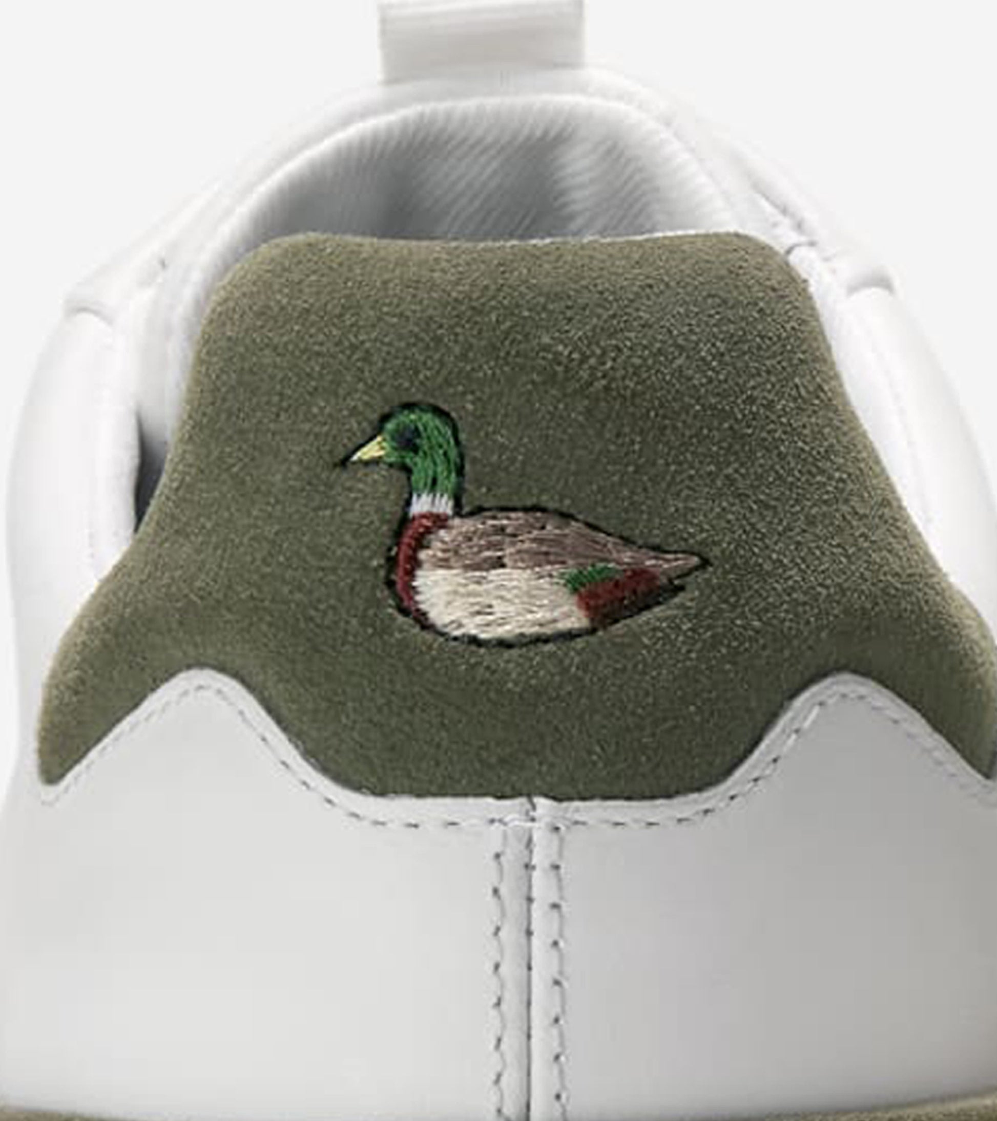 A golf shoe with follow-through: Cole Haan continues to celebrate its rich history in Golf with this newest edition of 'The Mallard'. GrandPrø Topspin Golf in waterproof leather with sealed seams, a cushioned footbed with added padding at its heel and collar, and a spike-less rubber outsole for extra traction.