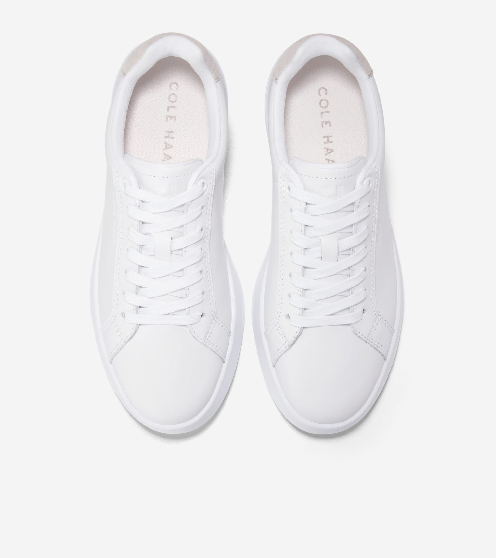Leather and suede upper in White and Light Sesame, seven eyelet lacing system